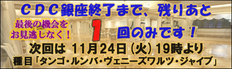 引き続き、CDC銀座は、CDC東京若者社交ダンスとして、東京都千代田区・江東区のエリアで、毎週火曜日に活動を続けてまいりますし、その他の、CDC中野も、引き続き活動してまりますので、引き続き、どうぞご愛顧の程、よろしくお願い申し上げます。