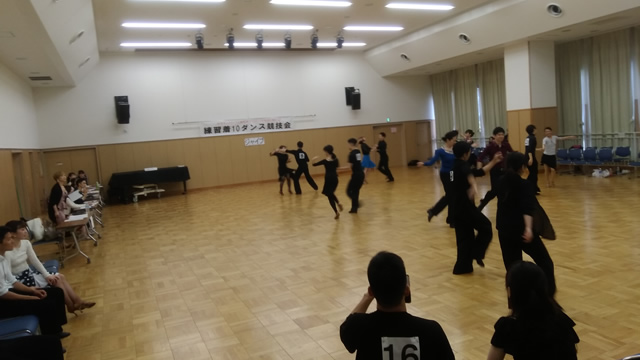 練習10ダンスの特徴は、『みなさんの荷物をいつものサークルへ行く程度に少なくしてより気楽に参加できるように練習着で踊り』、『同一ペアーで3種目まで組めるようにした』、『出場年齢制限のないオープンな』、といった感じのダンスをはじめたみなさんが一番気楽に参加しやすくした、プチサークル競技会です。
