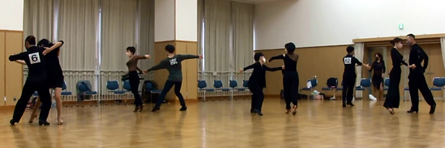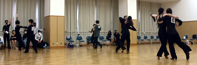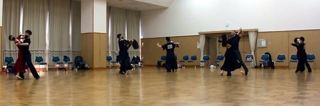練習10ダンスの特徴は、『みなさんの荷物をいつものサークルへ行く程度に少なくしてより気楽に参加できるように練習着で踊り』、『同一ペアーで5種目まで組めるようにした』、『出場年齢制限のないオープンな』、といった感じのダンスをはじめたみなさんが一番気楽に参加しやすくした、プチサークル競技会です。
