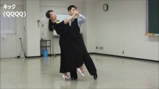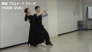 「連続プロムナードウォークから、フォーラウェイリバース、バックチェックの流れと、キックが入ったルーティンを踊ってみる」