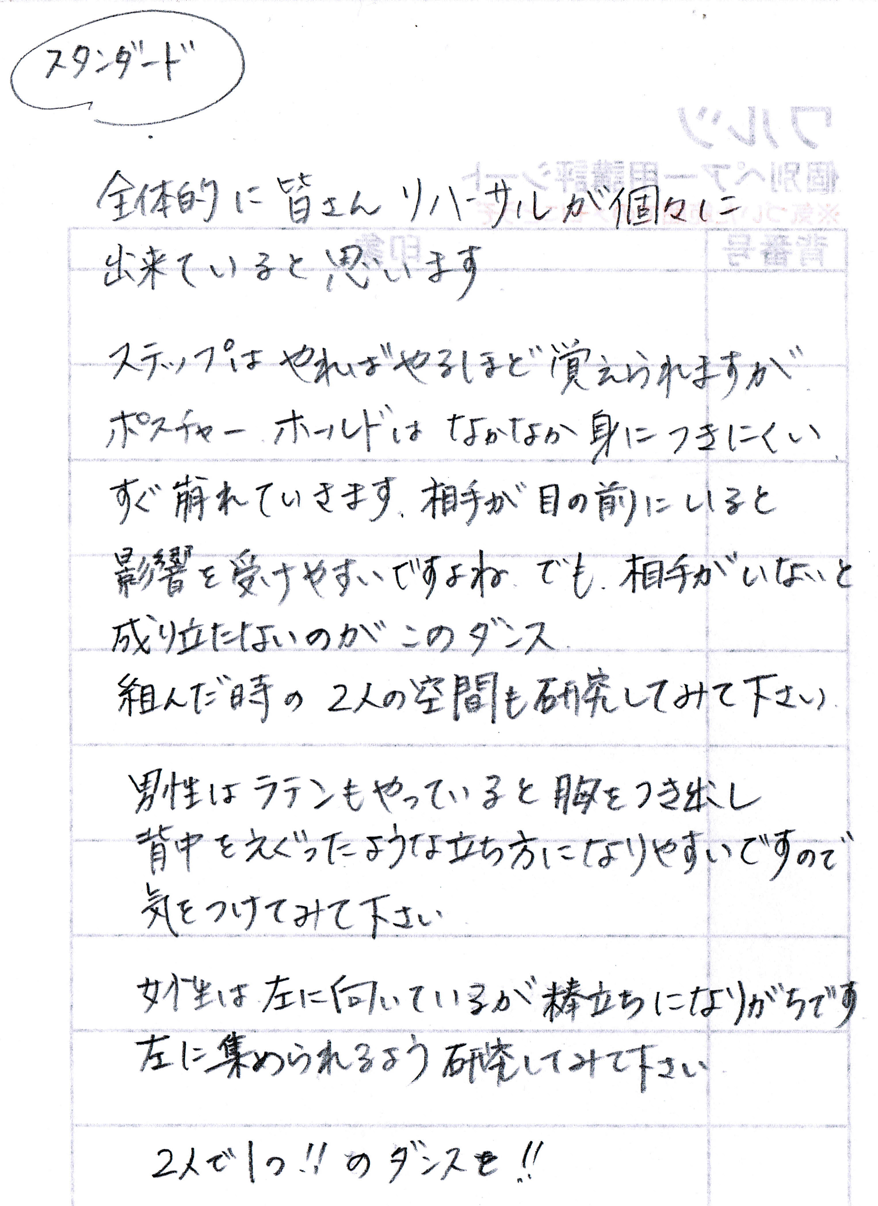 まだまだ経験が浅い、新人女性のみなさんと組んで、上手くリードして、好成績を上げて、社交ダンスの楽しさを伝えてあげたこと、上手いダンスを体感させてあげたことは、素晴らしい役割・貢献だったと思います。